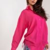 Women’s shirt of loose fit with long sleeves, buttoned. On the sides of the shirt welts.