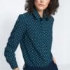A viscose pea shirt with a delicate collar and long sleeves is a must have this fall! The combination of green and peas looks great with both classic and more striking styling. The shirt looks good solo, as well as under a soft cardigan or under a blazer.