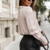 Emilie shirt is a classic women’s shirt sewn from smooth, uniform and breathable fabric. A model brilliant in its simplicity, it will be perfect for almost any occasion. Gold buttons, wide cuffs and discreet logos, break the minimalism of the shirt, are like perfectly matched jewelry and add to its character. The shirt is designed and sewn in Poland.