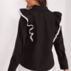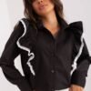 Ideal for a variety of occasions, from work to business meetings or formal events, the classic shirt combines the comfort of a casual style with the elegance of a classic cut. Its cut is versatile, making it perfect for both everyday situations and more formal occasions. Made of high-quality cotton, it ensures not only comfort of wear, but also durability and natural ventilation. The long sleeve and standard length add a traditional touch to the shirt. The collar and button closure add elegance, creating the perfect base for a variety of outfits. Unique details include a decorative ruffle on the shoulders, which adds a subtle lightness to the shirt, giving it a girlish charm. In addition, the decorative lace placed on the frills gives the shirt a unique, delicate character. This fine decoration is an elegant contrast to the plain pattern dominating the rest of the shirt. This classic shirt is a combination of comfort, elegance and subtle details that will make the wearer look stylish and classy, both at work and at more formal events.