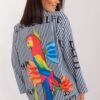 This unique women’s shirt is the perfect choice for everyday wear, whether for work, meeting friends or going for a walk. Its casual style makes it versatile and suitable for many different situations. Made of high-quality polyester, this shirt guarantees not only comfortable wear, but also durability and easy care. The long sleeve and collar add elegance while maintaining a casual feel. The shirt features a colorful print and stripes, which gives it originality and freshness. It is a dominant pattern that attracts attention and adds character to the shirt. The button closure makes it easy to put on and ensures a secure fit. The length of the shirt is standard, making it comfortable to wear both inside and outside of pants. This makes it a versatile piece of clothing that can be customized to suit your preferences and styling. With its combination of casual style, high-quality materials and original print, this women’s shirt will be a great addition to any woman’s closet, adding character and freshness.
