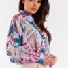 Oversize chiffon shirt with wide and ruffled sleeves at the cuff, fastened with transparent buttons.