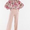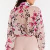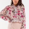 Oversize chiffon shirt with wide and ruffled sleeves at the cuff, fastened with transparent buttons.