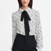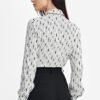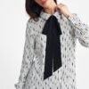 This unique shirt is a must-have for any woman who appreciates originality. Made of viscose, which is pleasant to the touch, it ensures comfortable wearing all day long. An interesting pattern adds to its character and makes it stand out from the crowd. The classic collar with a black sash for tying allows you to create many styles. The long sleeve finished with a cuff gives the shirt an elegant look. The front button closure makes it easy to put on and take off. This shirt is an investment in your closet. Its original design and pleasant material will make you feel special and stylish in any situation. This is an item that should be in the closet of every woman who values individuality.