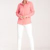 Classic women’s shirt with a collar. Fastened with snaps. The closure is covered with a placket. The collar and cuffs fastened with silver decorative snaps.