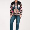 Colorful oversize shirt with a bold floral pattern. Made of lightweight material, it has a classic collar and loose sleeves.