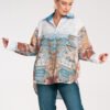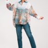 Oversize shirt with an artistic print made of light material. Shirt with a classic collar with contrasting finish and wide sleeves with cuffs.