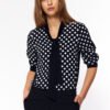 Extremely delicate shirt in colorful polka dots is the perfect complement to a soft office outfit. The shirt reflects the fashion comeback to the crazy 60s. The polka dot pattern gracefully adds a girly look. The shirt has a print only on the front, the back is smooth.