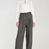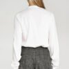 Stylish women’s shirt in a blouse cut in a regular style, made of lightweight and breathable viscose. The model has a tie at the neck with a delicate slit at the neckline, which gives the whole a subtle elegance and feminine character. The shirt has long sleeves and is buttoned, allowing for a customizable fit. Additionally, gentle pleats at the collar introduce a subtle detail, emphasizing the modern style. Ideal for the office as well as casual occasions.