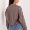 Women’s casual shirt with pockets is a comfortable and stylish proposition for everyday outfits. Made of high-quality cotton with a touch of elastane, it ensures comfort, breathability, and perfect fit to the silhouette. The smooth fabric and classic button fastening give it a universal character that fits perfectly into a casual style. The model with a shorter length, long sleeves, and a collar has practical front pockets with flaps, adding functionality to the whole. At the back, a rubber band is sewn at the bottom, so the shirt fits better on the silhouette and subtly emphasizes the waist. It goes well with jeans, skirts, or shorts, creating a comfortable and trendy everyday outfit.