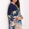 Women’s casual shirt, perfect for everyday wear and work. Made of a lightweight and pleasant to the touch blend of viscose and polyester, it guarantees comfort throughout the day. The longer cut model with a classic collar and long sleeves fastened with buttons hidden under an elegant flap. The entire surface of the material is printed, and additional details in the form of inscriptions on the collar, flap, and around the bottom give the shirt a modern, unique character. This is a proposal for women who appreciate comfort combined with original style.