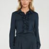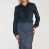 Women’s shirt with a fitted fit, elegantly emphasizing the silhouette. Equipped with a classic collar and long sleeves, it is a timeless base for styling. The model fastens with buttons, enriched with a spectacular, decorative jabot, which gives the whole a unique, feminine character. An ideal proposition for both the office and special occasions, where style and subtle elegance matter.