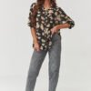 If you love classic with a touch of romance, this floral shirt will be your new favorite. Airy, slightly looser fit and subtle collar give it a nonchalant chic, perfect for both the office and casual meetings with friends. Made of lightweight material, it beautifully drapes on the silhouette and does not restrict movement. The floral print with a slightly retro character adds a unique charm to it – available in two color versions: black with beige flowers perfect for classic jeans and ankle boots, dark brown with blue flowers great base for autumn stylizations with warm tones. The shirt fastens with buttons, with a slightly lowered shoulder line and long sleeves. You can wear it loosely or tuck it into high-waisted pants, it looks great in every version. Opt for a style that never ages. This shirt is a must-have for every capsule wardrobe! Made in Italy.