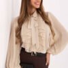 Stylish and feminine women’s shirt that will work perfectly for everyday wear, at work, and during formal occasions. Made of high-quality polyester and elastane blend, it is lightweight, flexible, and pleasant to the touch, guaranteeing comfort throughout the day. The model has a classic collar and button closure, giving it an elegant, timeless character. Attention is drawn to the pleated jabot with a tie at the front, which is an eye-catching, feminine accent. Long, pleated sleeves subtly enhance the overall look and add exceptional class to the shirt. Thanks to the smooth fabric and standard length, the shirt looks great paired with a skirt or pants, creating a stylish office or special occasion outfit.