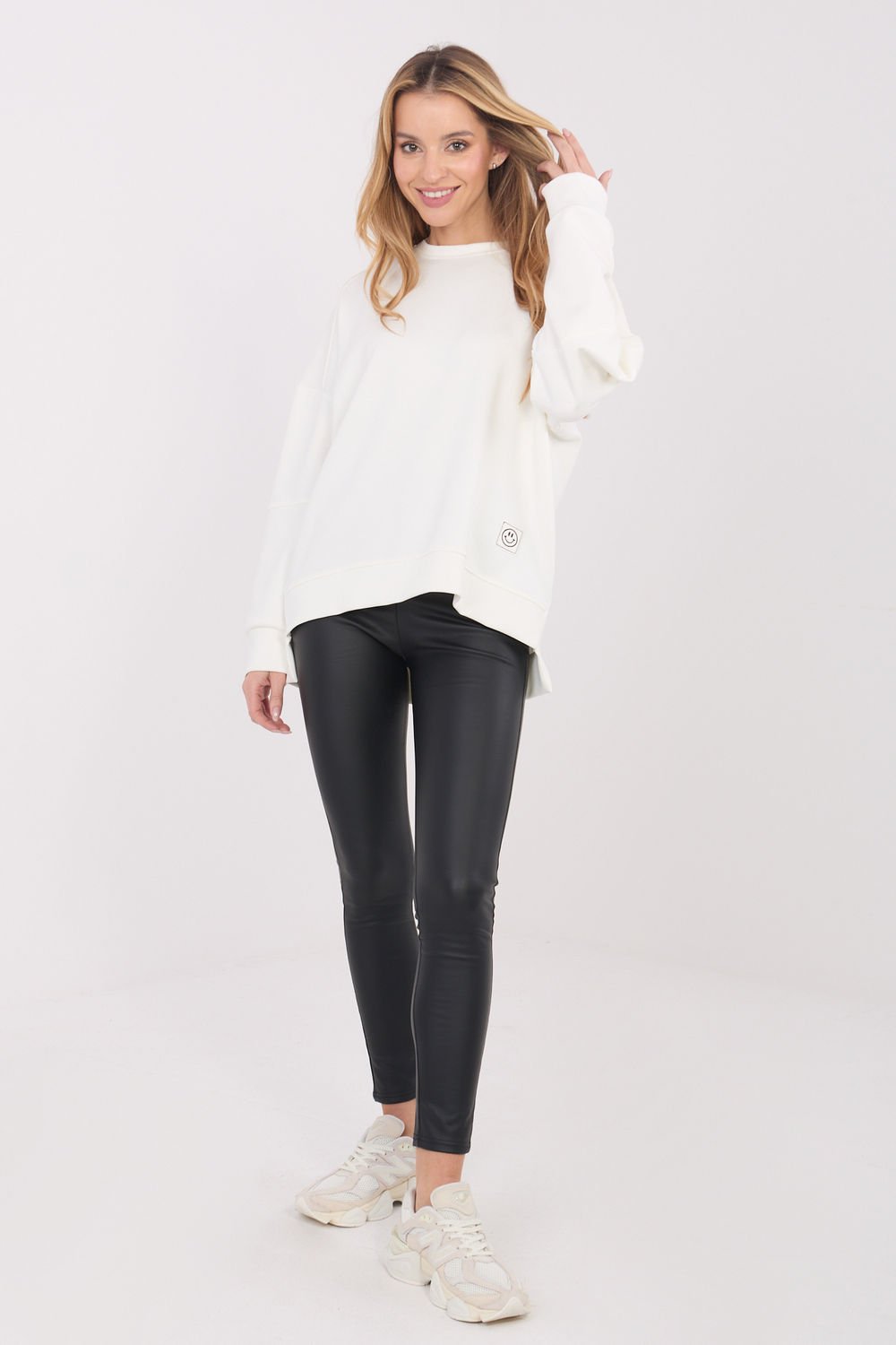 Stylish women’s collarless shirt is a classic and timeless wardrobe piece that will work in many stylizations, both everyday and more formal. Made of a lightweight blend of viscose and polyester, it is soft to the touch, comfortable, and fits well on the silhouette. The model has a round neckline and long sleeves, and the button fastening allows for adjustment of comfort when wearing. The subtle frill on the front adds an elegant character to the shirt and makes the whole look exceptionally chic. The shirt of standard length and smooth pattern fits perfectly with trousers, skirts, and layered stylizations under a blazer or sweater. It is an ideal choice for everyday wear, for work, and for formal occasions.