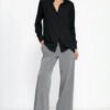 A delicate shirt with a collar in muted shades is an unquestionable must-have in softoffice stylizations. Pleasant to the touch material, with a composition of 100% viscose, ensures high wearing comfort. On the other hand, the practical cut fits the body perfectly and allows you to enjoy not only a stylish look all day long, but also comfort.