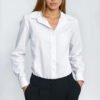 Elegant white shirt with a collar made of smooth and pleasant to the touch material. It has a tailored fit with long sleeves that are finished with cuffs. The shirt will work perfectly in suit stylizations, it is the perfect base for a business wardrobe.