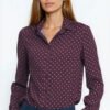 Silk polka dot shirt with a delicate collar and long sleeves is a must-have this fall! The combination of green and polka dots looks great with both classic and more bold styling. The shirt looks good on its own, as well as under a soft cardigan or blazer.