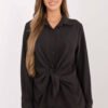 Elegant classic women’s shirt, perfect for everyday wear, work, and various formal occasions. Made of high-quality polyester, making it lightweight, durable, and comfortable to wear, while maintaining a flawless appearance throughout the day. The standard, longer length model presents a smooth, timeless pattern that pairs perfectly with both elegant trousers and a classic skirt. The collar gives it a formal character, emphasizing the classic style. The shirt has long, puffy sleeves that end with cuffs, adding a subtle femininity and a fashionable touch. Decorative tying is placed on the front, serving a decorative function, attracting attention, and adding a unique expression to the whole. The model is buttoned up, emphasizing its elegant, traditional character. This is a proposal for women who appreciate style, comfort, and delicate decorative details that distinguish the classic shirt in everyday and formal stylizations.