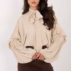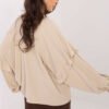 This elegant collarless women’s shirt is a timeless proposal with a classic character, perfect for both everyday wear and for work or formal occasions. Made of lightweight polyester, it offers comfort and impeccable appearance throughout the day. The model has a standard length and long, puffy sleeves with a subtle frill that adds a feminine charm to the whole. The neckline with decorative tying emphasizes the neck, and the practical button closure ensures comfort and a classic style. The smooth fabric makes the shirt perfect to combine with both elegant trousers and a skirt, creating a stylish and neat look.