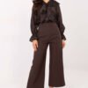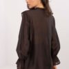 An elegant women’s shirt without a collar, perfect for everyday wear, work, and more formal occasions. Made from a high-quality blend of Tencel and polyester, making it soft, breathable, and pleasant to the touch, while also elegantly draping. The standard length model features a smooth, classic pattern that emphasizes its timeless character. The V-neck adds a feminine touch, while the front is adorned with a subtle ruffle, introducing a chic, romantic accent. The shirt has puffy sleeves, finished with an elegant ruffle, giving the overall look a unique style. The button closure emphasizes the classic character of the shirt, while maintaining its delicate, elegant line. This is the perfect choice for women who appreciate refined style combined with comfort and subtle, fashionable details.