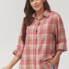 There are clothes that never go out of style and a plaid shirt is just such a classic that is worth having on hand all year round. Our proposal is a modern look at a timeless pattern. Loose fit, slightly elongated back, and soft, pleasant to the touch fabric make you fall in love with it from the first wear. Available in several color variants of plaid, from warm, spring tones to more subdued versions, it will work well in both everyday stylizations and more casual ones: with leggings, jeans, or as a throw over a T-shirt. It is the perfect shirt for the day, wear it with ankle boots, sneakers, or even with a belt at the waist if you like to play with shapes. It is not just a shirt, it is a base for many stylizations. It combines ease, femininity, and coziness. Just put it on once to understand why plaid never goes out of style. Made in Italy.