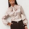 The satin VIVIENNE shirt in beige is a perfect choice for women who value elegance and comfort in any situation. Made of high-quality materials, this shirt is perfect for both everyday wear and more formal occasions. Its satin finish gives it a unique shine, making every outfit more attractive. The product is available in various sizes, allowing for a perfect fit to the silhouette. The material of the VIVIENNE shirt is 95% viscose and 5% elastane, making it exceptionally pleasant to the touch and fitting well on the body. Viscose ensures breathability, while the addition of elastane allows for easy movement, making this shirt perfect for all-day wear. It is also worth paying attention to the details that show the care of execution. The delicate cut and elegant seams are just some of the advantages of this model. The VIVIENNE shirt will look great both paired with jeans and a skirt for special evening outings. By choosing the satin VIVIENNE shirt, you are investing in a timeless wardrobe piece that can be styled in many different ways. Thanks to its versatile character, it will become an indispensable part of your wardrobe, highlighting your individuality and classic style.