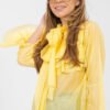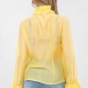 Elegant women’s shirt with a stand-up collar, a classic model perfect for everyday wear, work, and formal occasions. Made of high-quality blend of Tencel and polyester, which ensures softness, lightness, and comfort of wearing, while also providing an elegant, meticulous look. The standard length model stands out with a smooth pattern that emphasizes its timeless character. Long sleeves with a frill at the end give the whole a subtle femininity and finesse, while the stand-up collar visually lengthens the silhouette and emphasizes the neck. At the front of the shirt, there is a ruffle with a tie, which is an elegant detail that adds chic and a unique character. The shirt also has a button fastening, which makes it easier to adjust and maintains a classic cut. This is an excellent proposal for women who appreciate a combination of elegance, comfort, and subtle details in everyday and formal stylings.