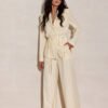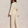The elegant blouse with a design inspired by a blazer stands out with a delicate tie at the waist, subtle button closure, and vertical stripes that visually slim the silhouette. The carefully crafted cut emphasizes the feminine form, while maintaining comfortable wear. The model was made in Poland with attention to detail and high quality finishing. The blouse has shoulder pads that give the silhouette a distinct, modern character. It will work perfectly in both everyday and business stylizations when paired with elegant trousers, a skirt, or as a stylish alternative to a classic blazer.