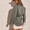 The shirt in a loose, modern cut was designed with comfort and universal style in mind, perfect for everyday wear. The model stands out with its timeless form, careful finishing, and subtle shoulder pads that give the silhouette definition. The shirt is buttoned up and was produced in Poland with a focus on quality and details. It looks great in casual outfits with denim shorts and sneakers, as well as in a more feminine look, paired with fitted trousers and high heels.