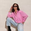 The shirt with a loose, modern cut was designed with comfort and universal style in mind, perfect for everyday wear. The model stands out with its timeless form, careful finishing, and subtle shoulder pads that add definition to the silhouette. The shirt is buttoned and was produced in Poland with attention to quality and details. It looks great in casual stylings with denim shorts and sneakers, as well as in a more feminine version, paired with fitted trousers and high heels.