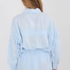 Women’s casual shirt that will work perfectly in both everyday outfits and at work. The classic, smooth pattern makes the model universal and easy to combine with various wardrobe elements, from elegant trousers to jeans. The shirt is made of high-quality lyocell, cotton, and linen blend, making the fabric light, breathable, and comfortable to wear. The standard length allows you to wear it tucked into pants or a skirt, as well as loosely. The model has a classic collar and long sleeves, emphasizing the timeless character of the shirt. An additional advantage is the practical tying at the back, which allows for adjusting the width of the shirt and better fitting to the silhouette, while giving the whole a subtle, feminine accent.