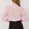 Women’s shirt in a classic cut, which will work perfectly both for everyday wear, for work, and for more formal occasions. The model of standard length, buttoned, combines timeless elegance with modern details. Made of a pleasant to wear blend of lyocell and polyester, it provides comfort and durability. The fabric is decorated with a subtle pattern of fine stripes, which adds lightness and stylish character to the whole. The shirt stands out with puffy sleeves ending with wide cuffs, which give the silhouette expressiveness. An additional advantage is the tie at the neck, allowing you to create an elegant bow or tie it freely depending on the occasion.