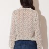 Elegant chiffon shirt with long sleeves. A neckline finished with a tie. Loose cut shirt, buttoned. The shirt is made of delicate translucent fabric with birds.