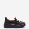 Women’s slip-on half shoes were made of natural leather. On the front there is a gold ornament made of plastic. This model is set on a massive platform. Under the tongue there is an elastic band, which will allow you to adjust the footwear to the size of the leg. The toe caps are rounded. The heel counter is stiffened. Vladka made of natural leather will ensure comfort all day long!