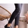 Black moccasins made of Seraphin eco-leather are a perfect choice for summer days. Comfortable and easy to put on thanks to the slip-on construction, they are also a very fashionable addition to summer stylings. Low shoes with a rubber sole provide comfort all day long, and the round toe adds elegance to them. They match many different stylings, making them an ideal complement to your summer wardrobe. The outer material is eco-leather, and the shoes are not lined. Additionally, the black sole color and slip-on closure make the shoes practical and versatile. Perfect for summer!
