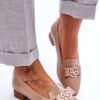 Mokassins with a classic cut set on a flat heel. They have a pointed nose. The moccasins are made of high quality eco leather. They have a fashionable decoration on the front. The insole is made of natural leather and is very comfortable to wear. These shoes are sure to match many elegant, but also casual styling.
