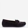 Classic moccasins for women were made of eco-suede. This model has decorative straps with a padlock and ring on the front. The moccasins are set on a delicate platform. A soft insole will ensure comfort while using the footwear. This model has a slightly rounded nose. Perfect for many stylings in the spring and autumn season!