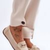 Women’s moccasins are perfect for many occasions! They were made of eco-suede, which is pleasant to the touch. This model has a plastic decoration on the front. The moccasins are set on a non-slip sole. The soft eco leather insole will provide comfort while using the shoes. In addition, it is delicately perforated.
