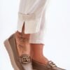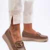 Women’s moccasins have been made of natural leather with attention to detail. They have a decoration on the front. The heel counter in these shoes has been stiffened, which will help to properly stabilize the foot. The moccasins are set on a delicate anchor and platform. Also check out the other models available on our site!