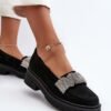 Women’s moccasins made of natural suede are a combination of elegance and comfort. The front of the shoe is decorated with a crinkled strap with small zircons. The contoured insole provides comfort and convenience while wearing, and the natural suede gives them an exclusive look. This is an ideal choice for those who appreciate both style and comfort.