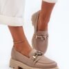 These stylish moccasins by Laura Messi are made of natural leather for quality and durability. Set on a flat heel and platform. The front is decorated with a shiny loop, which gives them a unique charm. An excellent choice for those who appreciate comfort and a fashionable look.