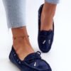 Women’s classic moccasins were made of eco-suede. This model has a decorative bow on the front and strings weaving through the sides of the upper. The moccasins are set on a non-slip sole. The soft eco leather insole will ensure comfort during the use of the shoes. In addition, it is delicately perforated. You should definitely have them in your footwear collection!