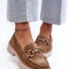 Women’s loafers made of natural suede. Set on a flat heel. An additional decorative element at the front gives them unique charm, making them an original addition to any outfit. Whether you’re meeting with friends or attending a more formal event, these loafers will be the perfect complement to your look, adding a touch of subtle elegance.