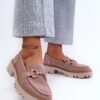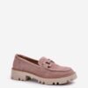 Women’s moccasins made of natural suede. Set on a flat heel. An additional decorative element at the front gives them exceptional charm, making them an original addition to any outfit. Whether you’re going to a meeting with friends or a more formal event, these moccasins will be the perfect complement to your look, adding a touch of subtle elegance.