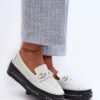 Women’s loafers made of genuine leather. Front strap with chain detail. Set on a platform, providing extra cushioning and stability while walking. Comfort leather insole. These trendy loafers will perfectly complement various outfits!