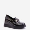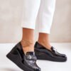 Women’s moccasins were made of natural leather. Set on a platform and an anchor. Rounded nose pads. A comfortable insole made of natural leather will provide comfort during use. In addition, these shoes have a stiffened heel counter. A decoration on the front on the strap.