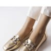 Stylish gold moccasins with zircons Marechal are the perfect footwear for any woman who likes to shine. Made of high-quality eco-leather, they provide comfort and durability. The brown synthetic sole guarantees stability and confidence in every step. The slip-on closure makes it easy to put on and take off shoes quickly. These stylish moccasins will certainly be a perfect addition to your summer wardrobe.