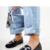 Black moccasins Mali with a zircon buckle are the perfect choice for the new generation of fashionistas who like to be innovative. They have a square toe and are slip-on style, which makes them very comfortable to wear. Made of high-quality rubber, they provide durability and comfort of use. Additionally, adorned with zircons, they add elegance and shine. This is an absolute must-have for every fashionable woman!