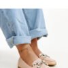 Beige moccasins with a cubic zirconia buckle Mali Mocasinii Mali represent the perfect combination of modern design and comfort. These slip-on moccasins, with a low sole, stand out with their unique square toe and a decorative buckle with cubic zirconia, adding an elegant charm to them. Made from high-quality materials, they have a rubber elastic sole, ensuring comfort throughout the day. These modern moccasins will be an excellent addition to any style, adding a unique character to it.